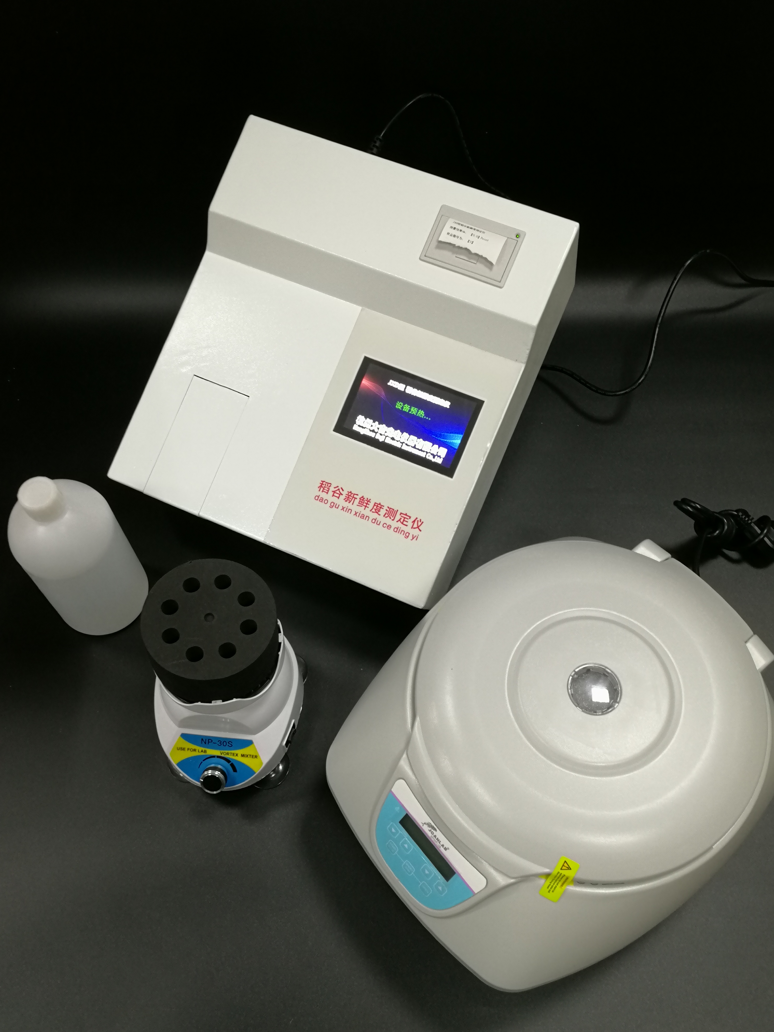 3、主機(jī)用來檢測(cè)經(jīng)振蕩、離心后的待測(cè)溶液,直觀顯示稻谷新鮮程度的檢測(cè)值。新鮮度值數(shù)據(jù)可以直接查看、輸出或打印。