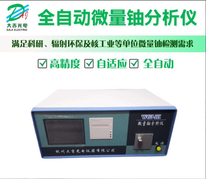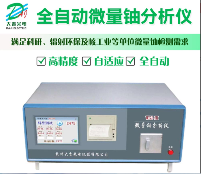 微量鈾分析儀WGJ-Ⅲ型由杭州大吉光電儀器公司自主研發(fā)生產(chǎn),儀器設(shè)計(jì)采用紫外新光源,該光源的主要特點(diǎn)是性能穩(wěn)定;所用的脈沖光管壽命可達(dá)5年,如用標(biāo)準(zhǔn)加入法能分析8萬(wàn)個(gè)樣品。電路設(shè)計(jì)采用新穎的單片機(jī),測(cè)試時(shí)的所有操作只要按中文提示輕輕點(diǎn)擊液晶觸摸屏上的對(duì)應(yīng)選項(xiàng),就可用標(biāo)準(zhǔn)加入法、曲線法分析樣品,由單片機(jī)直接進(jìn)行數(shù)據(jù)處理,液晶屏顯示及打印機(jī)打印能同時(shí)給出終測(cè)試結(jié)果,大大減輕了測(cè)試工程師的工作量。該儀器設(shè)有RS232串行接口,可把測(cè)試數(shù)據(jù)直接輸入計(jì)算機(jī)。由于儀器具有精度高、檢測(cè)出限低、測(cè)量速度快、操作簡(jiǎn)便、取樣量少等特點(diǎn),從而可直接應(yīng)用于地質(zhì)勘探、核燃料工業(yè)部門(mén)、環(huán)境保護(hù)、工業(yè)衛(wèi)生,食品檢驗(yàn)及疾病控制系統(tǒng)等。