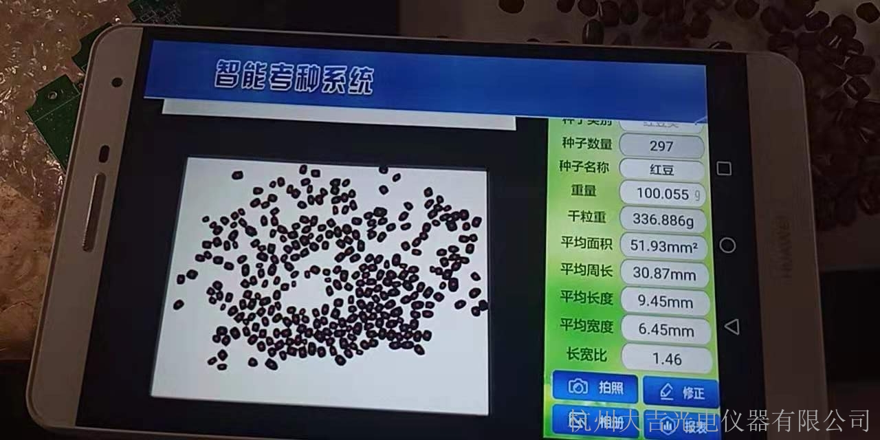 考種系統(tǒng)是由兩部分組成:背光裝置和裝有嵌入式軟件的平板。背光裝置采用的是高亮LED燈,外邊框是亞克力材料制作而成。軟件采用**的圖像處理技術(shù),根據(jù)距離變換原理、形態(tài)學(xué)、凹點切分等技術(shù)綜合設(shè)計的一款嵌入式軟件。該設(shè)備主要應(yīng)用在農(nóng)業(yè)領(lǐng)域的田間作物測產(chǎn)及考種等,通過攝像頭拍攝的照片,軟件自動計算種子數(shù)量,種子的平均面積、平均周長、平均長度、平均寬度、長寬比等數(shù)據(jù),根據(jù)天平所得的重量與種子的數(shù)量自動計算出千粒重;以列表和圖形的方式輸出結(jié)果,便于用戶查看與分析研究。本產(chǎn)品也可以手動對作物種子數(shù)量修正以確保計數(shù)精度、對數(shù)據(jù)進行保存,并且可以查看數(shù)據(jù)報表,*后可以將數(shù)據(jù)以Excel格式導(dǎo)出從而實現(xiàn)數(shù)據(jù)統(tǒng)計,分析智能化。