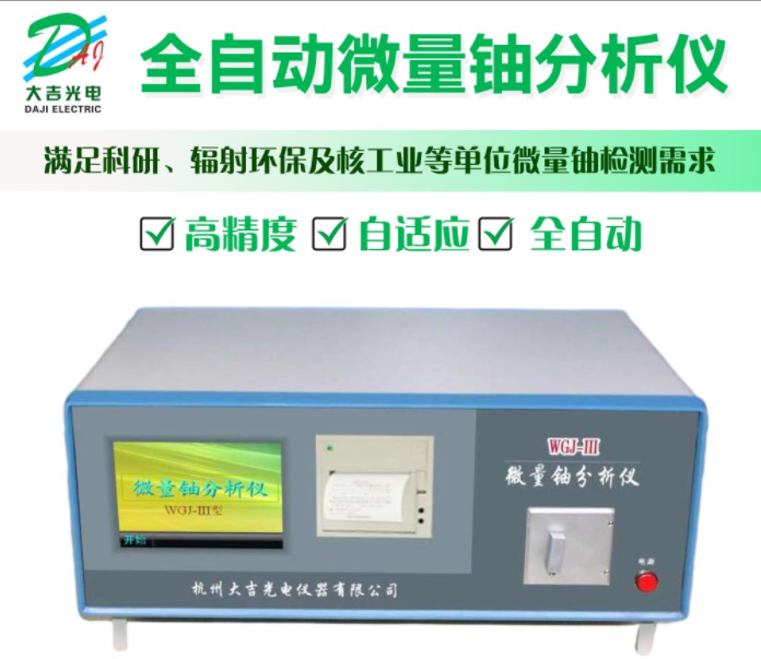 微量鈾分析儀WGJ-Ⅲ型由杭州大吉光電儀器公司自主研發(fā)生產(chǎn),儀器設(shè)計(jì)采用紫外新光源,該光源的主要特點(diǎn)是性能穩(wěn)定、無故障;所用的脈沖光管壽命可達(dá)5年,如用標(biāo)準(zhǔn)加入法能分析8萬個樣品。電路設(shè)計(jì)采用新穎的單片機(jī),測試時的所有操作只要按中文提示輕輕點(diǎn)擊液晶觸摸屏上的對應(yīng)選項(xiàng),就可用標(biāo)準(zhǔn)加入法、曲線法分析樣品,由單片機(jī)直接進(jìn)行數(shù)據(jù)處理,液晶屏顯示及打印機(jī)打印能同時給出終測試結(jié)果,大大減輕了測試工程師的工作量。該儀器設(shè)有RS232串行接口,可把測試數(shù)據(jù)直接輸入計(jì)算機(jī)。由于儀器具有精度高、檢測出限低、測量速度快、操作簡便、取樣量少等特點(diǎn),從而可直接應(yīng)用于地質(zhì)勘探、核燃料工業(yè)部門、環(huán)境保護(hù)、工業(yè)衛(wèi)生,食品檢驗(yàn)及疾病控制系統(tǒng)等。